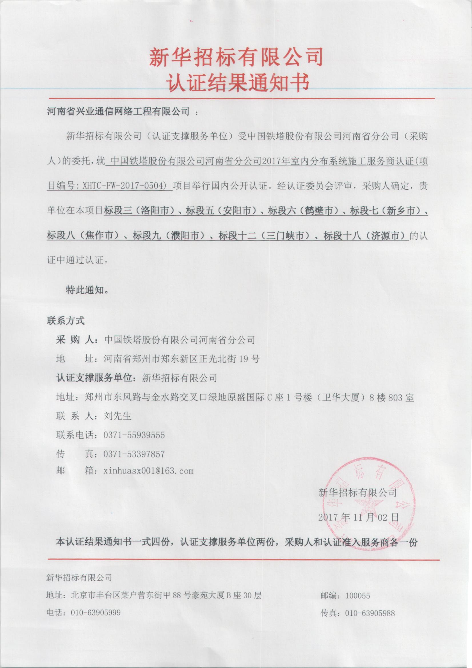 恭贺我公司中标中国铁塔2017年室内分布系统集成项目